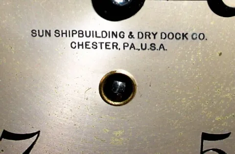 serial number 235736. This timepiece is mounted on a homemade pine bracket. The case could use a polishing. This example was made for the "Sun Shipbui...