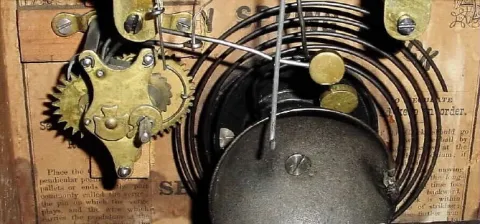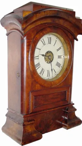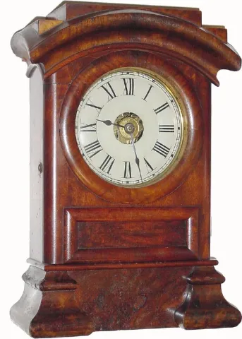 C.1885, Seth Thomas Clock Co., Thomaston, Conn., "Arch Top" 8-day time/strike/alarm mahogany shelf clock, in very good original condition.