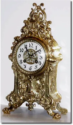 C.1890, French, Brass Architectural clock, the front with a fountain motif.