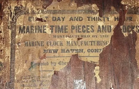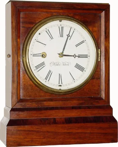C.1850, Marine Clock Manufacturing Co., New Haven, Conn., 8-day time/strike shelf clock, in excellent condition, the dial professionally repainted.