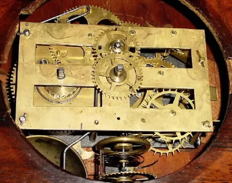 This is a rare clock with single spring to power both the time and strike. The movement has an iron backplate, large monometallic balance, and double ...