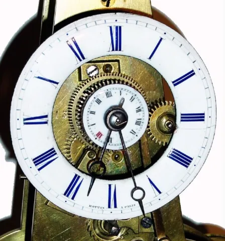 C.1851, French, Japy, Paris, Mini Alarm Skeleton Clock, less dome, but otherwise in very good original condition.