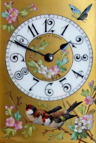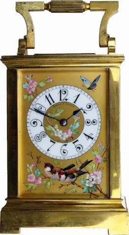 time and strike, with Aviary Porcelain Panels in excellent condition, and with original silvered lever platform intact. This clock is signed GL in an ...