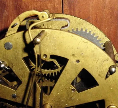 C.1855, Atkins, Whiting and Co., 30-day wagon spring, ripple molded drop octagon timepiece, in very good condition.