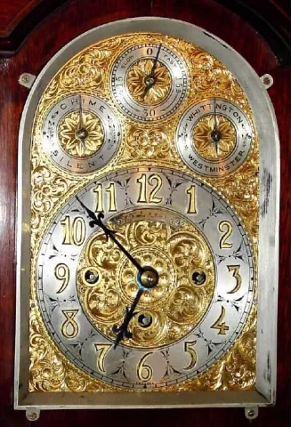 This robust and well made clock chimes on 8 bells or 5 gong rods, with your choice of Whittington or Westminster tune. The beautiful engraved dial has...