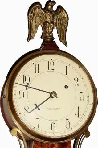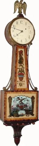 C.1925, Waltham Clock Co., Willard model weight driven banjo with cross banded case in good original condition, except for an old eagle from another clock.