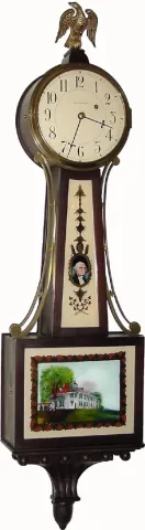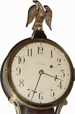 C.1935, Waltham Clock Co., Willard model banjo clock in a dark mahogany case with original Mt. Vernon Tablets, and in excellent condition.