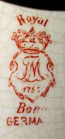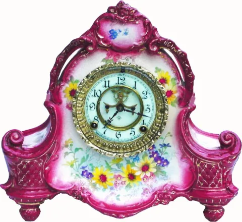 C.1901, Ansonia, La Vera, Royal Bonn porcelain china clock in excellent original condition.