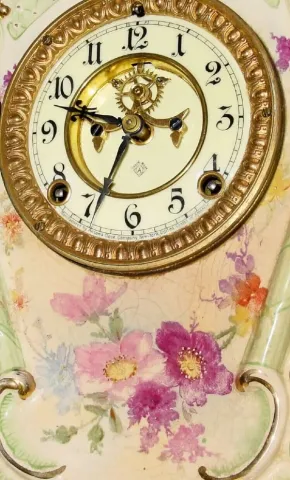 C.1900, Ansonia, Model 502, Royal Bonn porcelain china clock in very good original condition.
