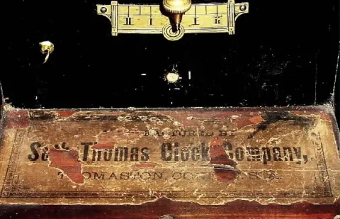 The only item that keeps this clock from being excellent is a small veneer repair on the bow-tie, under the numeral 5. The finish of the case has some...