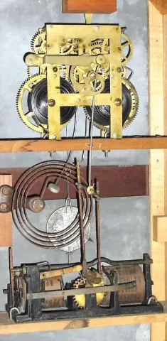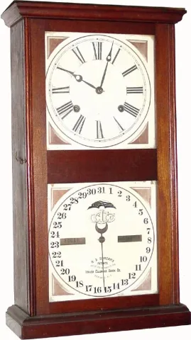 C.1874, Ithaca Calendar Clock Co., "No. 10 Farmer's" 8-day time/strike walnut, perpetual calendar clock, in excellent original condition.