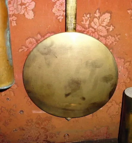 This clock uses the Welch upside down 8-day, seconds pendulum, 2-weight movement, as pictured in Miller's Survey of American Calendar Clocks, figure 1...
