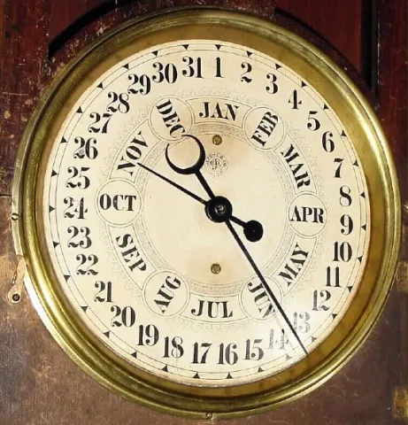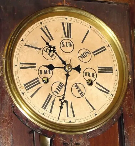 This clock is all original except for perhaps restoration of the bottom finial. The time dial is slightly discolored (darkened from contact), but both...