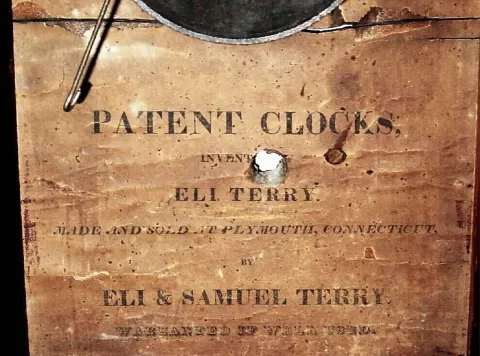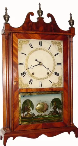 C.1825, Eli and Samuel Terry, Plymouth, Conn., 30-hour wood movement pillar and scroll clock, in good restored condition, the case refinished.