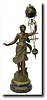 C.1890, French, Bronzed Spelter Mini Swinging timepiece. This is an attractive size clock. The turned wood base is original, but split from the center hole outward, and has been filled. The statue and arm retain original finish, and the attractive young girl has just set down her palette of paint and brushesÅ .the statue with a brass plaque on the base titled PEINTURE or 'painting', after Rousseau, and the statue itself signed Ruffony. The arm has some dirt and rust on the rods that someone has tried to scrape off, and the rear of the ball with minor dent. The suspension unit has come loose in transit and will need attention for the clock to run (ticks OK). Height is only 20 inches (ball diam is 2") Reserve $3100