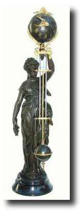 C.1890, French Bronzed Spelter Swinging Mystery Timepiece (swinger), HARVEST, in very good to excellent original condition. There is some paint loss on the ball where the hour hand scraped in its travel (see detail image), but this is ver minor. The clock is otherwise complete and sound. Height 29" $3500-4000