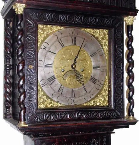 C.1760, Samuel Buttonworth, Rochdale, English 8-day tall clock with square brass dial and calendar aperature above 6.