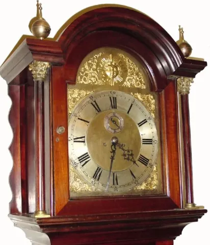 This is a nice bench made mahogany case and a well made factory movement, signed "Salisbury". There are very minor scrapes and a couple of small dry s...