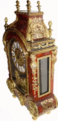 This is a large and attractive clock, and the shell and brass inlay are in quite good condition. The well made rectangular movement strikes the hours ...