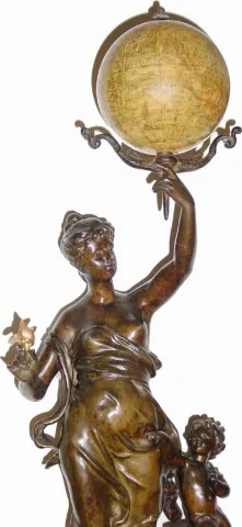 C.1900, French, Bronzed Spelter statue clock "LA TERRE" (par Anirie) in very good original condition