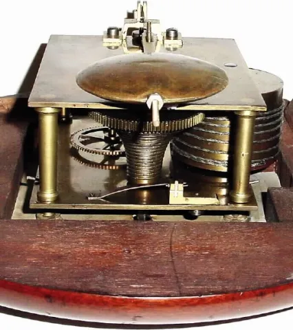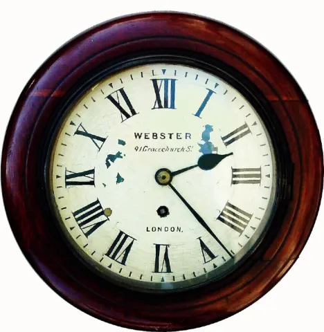 C.1890, English, Mini 8-day fusee gallery timepiece, with 71/2" dial.