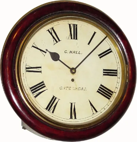 C.1890, G. Hall, Gateshead, England, 8-day fusee gallery timepiece.