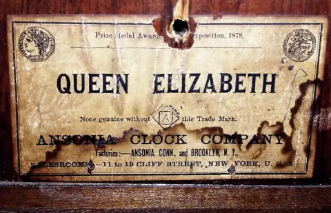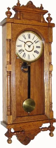 C.1901, Ansonia Clock Co., "Queen Elizabeth" 8-day time/strike oak wall clock.