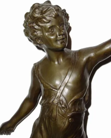 This is about as good as it gets for this model, excellent original dark greenish bronze patina on the statue and good gilding on the arm. excellent p...