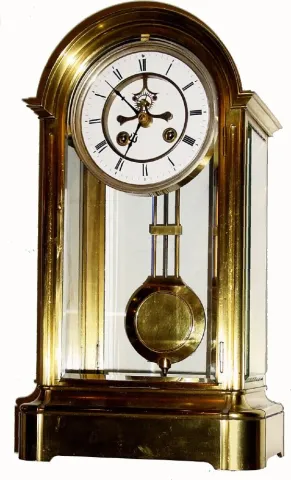 C.1900, Marti, French 8-day time-strike brass and glass crystal regulator.