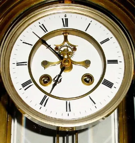 This is a large and heavy clock with a 5 1/2" dial, and with brocot escapement on the dial; note minute hand is about half an inch too short. There ar...