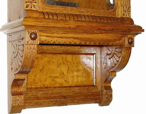 The only minor loss on this clock are the 7 little round oak balls that go on the peaks of the top. Original weight also has some nicks and scrapes (h...
