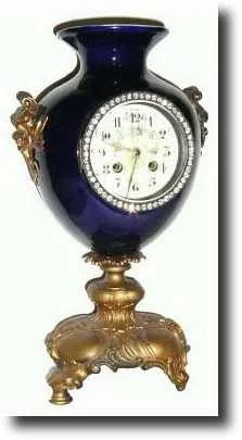 C.1890, French Clock in Blue Cobalt porcelain urn,