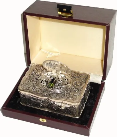 C.1980, Swiss, Reuge Music Co, St. Croix, singing bird box in an embossed sterling silver case, in original leather covered presentation box.