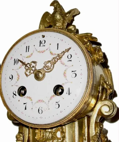C.1870, French, Mougin, Ormolu and White marble clock set.