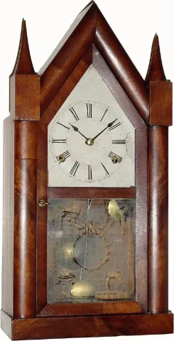C.1848, Smith and Goodrich, Bristol, Conn., 30-hour time/strike mahogany steeple clock, in very good condition.