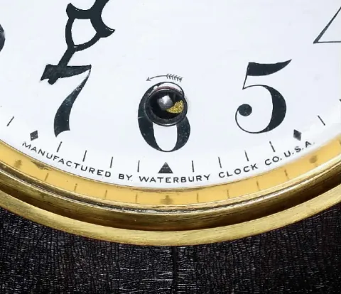 C.1917, Waterbury Clock Co., "Chime Clock 501" 8-day time/chime/strike mahogany mantel clock, in excellent original condition.