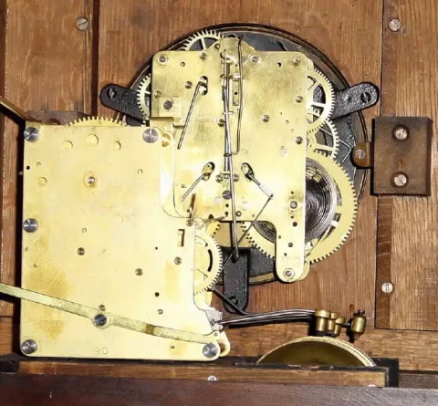 quarter chiming Westminster tune, restored. This quarter-sawn oak case has been very nicely refinished and the bezel polished. The silvered dial has a...