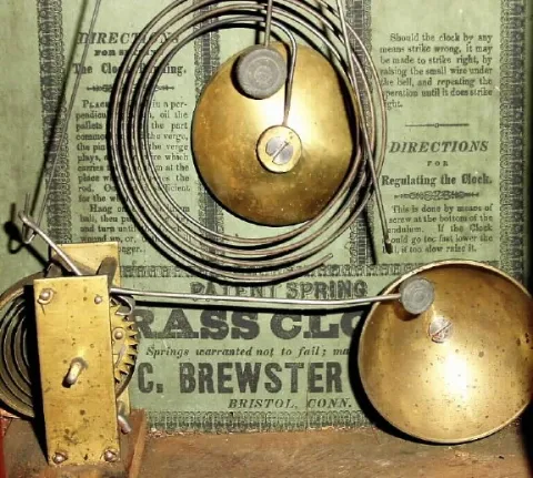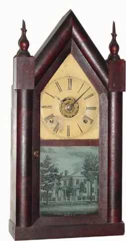 C.1855, E. C. Brewster and Son, Bristol, Conn, 30-hour time/strike/alarm steeple clock.