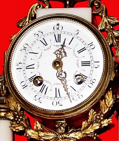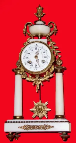 C.1885, French, Vincenti, White marble and bronze portico clock.