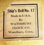 C.1929, Waterbury Clock Co., "Ships Bell No. 17" with 8-day jeweled movement, and in very good original condition.