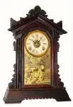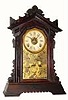 C.1885, Terry Clock Co., Pittsfield, Mass, uncommon COTTAGE model walnut gingerbread clock in excellent original condition.