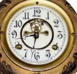 The porcelain dial has a repair at the time side winding hole. The figures were repainted long ago and are somewhat dirty.. The beveled glass crystal ...