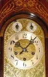 The floral marquetry inlay is especially nice on this clock. The arched brass and embossed dial has an applied silvered chapter ring and subsidiary di...