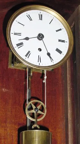 This is a well made clock with silk thread suspension, porcelain dial and hand made pulley, beat scale and weight to suit the small size of the clock....