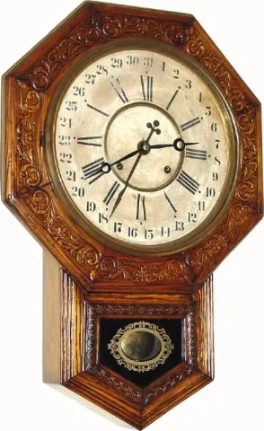 C.1901, Ansonia Clock Co., "Drop Octagon Extra Calendar" 8-day time and strike calendar clock, in good condition, with restoration.