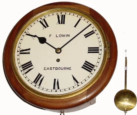 C.1900, English, F. Lowin, Eastbourne, 8-day fusee gallery timepiece in very good condition.