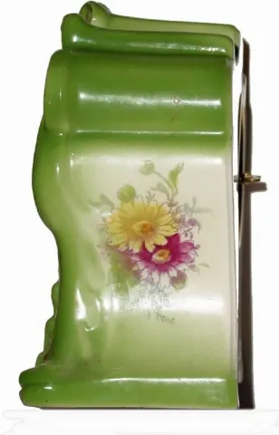 A very pretty timepiece with shades of green offset with yellow and purple flowers. There is some loss of the gold highlights from normal use. The cas...
