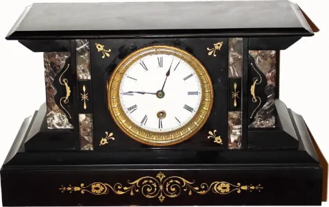 C.1890, Boston Clock Co., 8-day tandem wind time/strike lever movement marble shelf clock, in fair as-found condition.
