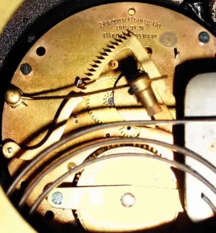 Note the movement, serial No.5588 is bound and will need service prior to operation; the balance staff is good, and clock will tick with pressure on t...