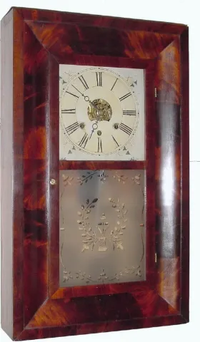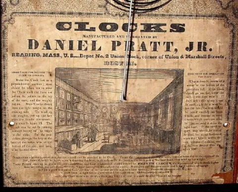 C.1850, Daniel Pratt, Jr., 30-hour time-strike-alarm OG shelf clock.